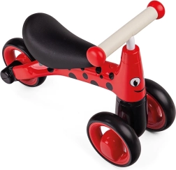 Für Fahrkomfort sorgen weiche Griffe für sicheren Halt und leise, leicht laufende Räder für eine sanfte Fortbewegung auf Boden und Gehweg. Das verspielte Design im Marienkäfer-Look motiviert zur Bewegung und verlängert die Zeit aktiven Spielens.