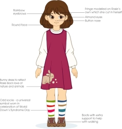 Das Kleid mit Tiermotiv und zwei unterschiedlichen Socken symbolisieren den Welt-Down-Syndrom-Tag und bringen Kindern Freude und Wissen.