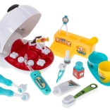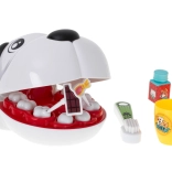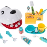 Das Set enthält eine Zahnbürste, einen Spiegel, ein Zubehörbrett und weitere Werkzeuge für realistisches Spielen.