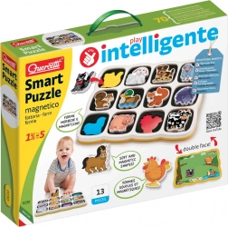 Bringen Sie Ihren Kindern Spaß und Lernen mit diesem Quercetti Magnetischen Einleger Bauernhof, der Spielen mit der Kenntnis von Formen und Farben durch magnetische Teile kombiniert.