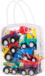 Wir präsentieren ein Set aus sechs farbenfrohen Baufahrzeugen mit Freilaufantrieb, die nur angeschoben werden müssen und dann selbstständig fahren. Diese Fahrzeuge regen die kindliche Vorstellungskraft an und bringen Spielspaß.