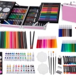Dieses vielseitige Set bietet 145 Teile, mit denen Sie Bilder in unterschiedlichen Techniken gestalten: Zeichnen mit Bleistift und Buntstiften, Malen mit Aquarell sowie mit satten Farben aus Tuben, farbige Illustrationen mit Filzstiften oder Arbeiten mit Ölpastellen. Alles ist übersichtlich in einem robusten Koffer mit Verschlüssen und Griff verstaut, sodass Sie die Ausstattung überallhin mitnehmen können.