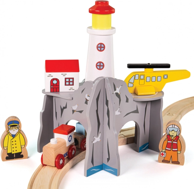 Holen Sie Küstenabenteuer mit Leuchtturm, Häuschen und Landeplatz für den Hubschrauber in Ihre Eisenbahnwelt. Kinder können den im „Meeres“-Fels verborgenen Tunnel erkunden, Rettungseinsätze leiten und Fantasie sowie Erzählfähigkeiten fördern. Das Set ist ein ideales, fantasievolles Erweiterungselement und passt hervorragend zu Themen wie Suche, Rettung und Leben am Meer.