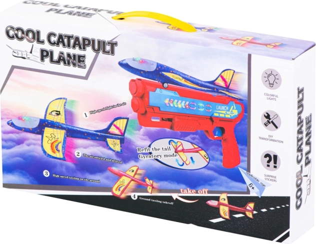 Das Flugzeug ist aus Schaumstoff-Polystyrol gefertigt und ist sehr leicht, sodass es hoch und weit fliegen kann. Das Spiel mit dem Startflugzeug ist eine großartige Möglichkeit, die manuelle Geschicklichkeit, die Vorstellungskraft und Reflexe des Kindes zu fördern. Es ist eine hervorragende Alternative zu Computerspielen, lenkt die Aufmerksamkeit des Kindes von langen Sitzungen vor dem Telefon oder dem Fernsehbildschirm ab und ermutigt es, aktiv Zeit zu verbringen. Das Spielzeug wird sicherlich nicht nur Kinder, sondern auch Erwachsene ansprechen. Die originelle Form und die kräftigen Farben ziehen die Aufmerksamkeit des Kindes auf sich und regen es zum Spielen an.