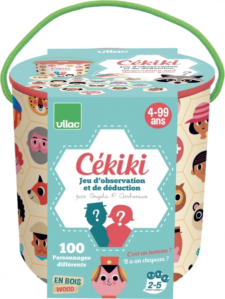 VILAC CÉKIKI ist ein flotttes Beobachtungs- und Ratespiel mit originellen Figuren der schwedischen Illustratorin Ingela P. Arrhenius. Legt die Holzteile mit Bildern auf den Tisch und probiert zwei Spielweisen: Entweder erratet ihr die geheime Figur mit cleveren Ja/Nein-Fragen oder ihr sucht so schnell wie möglich das Bild, das mit der aufgedeckten Karte übereinstimmt.