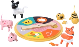 Unterhaltsames Holzspiel für Kinder ab 3 Jahren, das Chance und Geschicklichkeit kombiniert. Enthält bunte Tierfiguren und ein Glücksrad, das die Feinmotorik und Vorstellungskraft fördert.