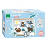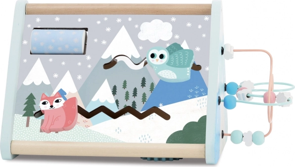 Dieses Holzspielzeug mit dem Thema Winterreich enthält mehrere Aktivitäten, die Ihrem Kind helfen, seine Fähigkeiten zu entwickeln: