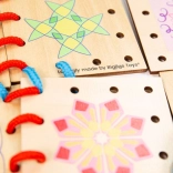 Fädeln, gestalten und kombinieren! Die perforierten Holzplättchen mit bunten Mustern sind ideal für die ersten Näh- und Auffädelversuche. Kinder trainieren spielerisch Griff, Konzentration und logisches Denken, während sie originelle „Patchwork“-Collagen erstellen.