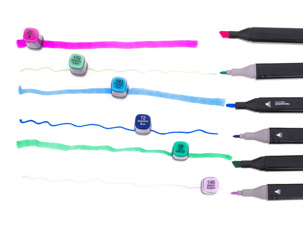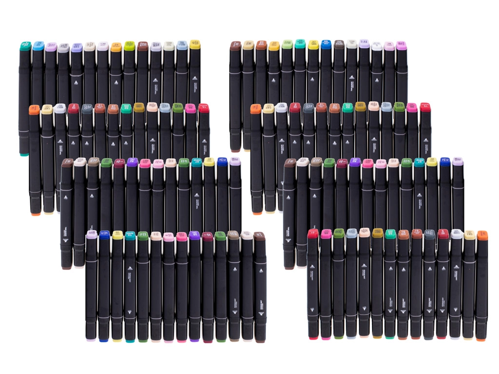 Bringen Sie Farbe in Ihr Leben! Unser mega Set von zweiseitigen Markern sorgt für farbenfrohe Ergebnisse.