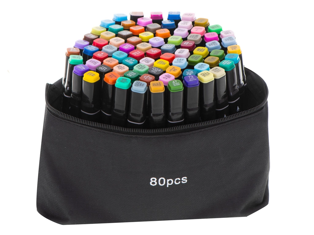 Entdecken Sie das umfassende Set mit 48 zweiseitigen Alkoholmarkern im praktischen Etui. Ideal für Künstler jeden Alters! Lebendige und dauerhafte Farben für einzigartige Kunstwerke.