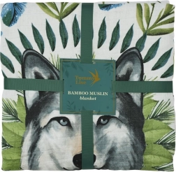 Bambus-Musselin-Decke Tommy Lise mit Wolfmotiv 106x106 cm