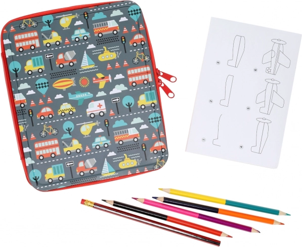 Dieses tragbare Kreativset fördert Fantasie, Feinmotorik und Geduld. Dank der übersichtlichen Anleitung lernen Kinder, verschiedenste Fahrzeuge leicht und mit Freude zu zeichnen. Das Metalletui mit Reißverschluss hält alle Utensilien zusammen und ist ideal für Ausflüge, fürs Auto und den Urlaub.