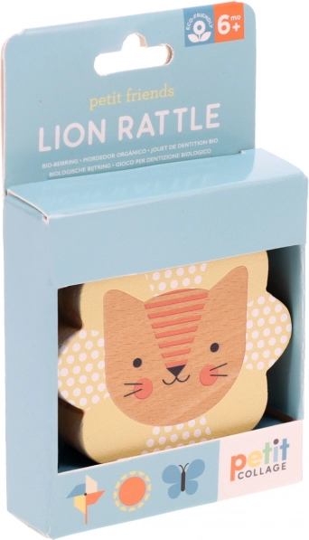 Diese stilvolle Holzrassel in Form eines Löwengesichts wurde entwickelt, um die ersten Entdeckungen der Welt zu unterstützen. Kinder werden durch das sanfte Rasseln und die angenehme Holztextur angesprochen, die sowohl umweltfreundlich als auch sanft zur empfindlichen Babyhaut ist. Dank der kompakten Maße lässt sie sich leicht halten und fördert den Greifreflex.