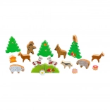 Set aus Holzfiguren von Bergtieren, ideal zum kreativen Spielen. Enthält 10 Tiere mit Zubehör, hergestellt aus hochwertigem Holz und mit wasserlöslichen Farben bemalt.