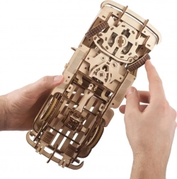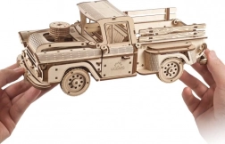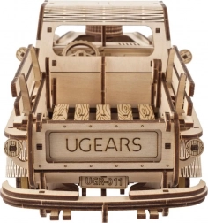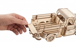 Auf der Ladefläche transportiert er nahezu ein halbes Kilogramm. Ideal für spaßige Leistungstests und Wettbewerbe mit weiteren UGEARS-Modellen.