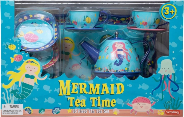 Ein wunderschönes 15-teiliges Teeservice mit Meerjungfrauenmotiv ist ideal für fantasievolle Teepartys und verschiedene Spiele Ihrer Kleinen.