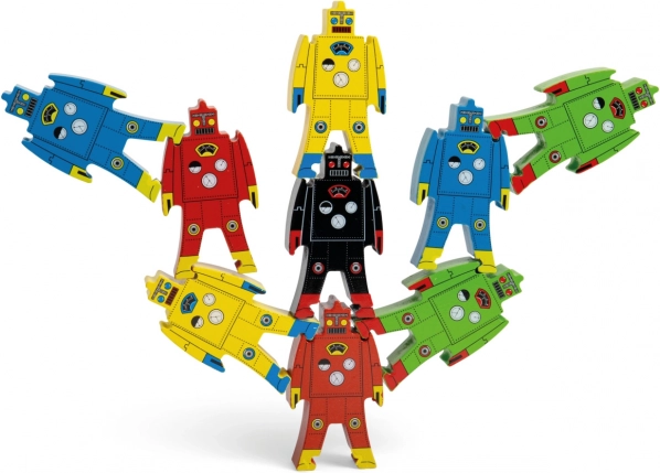 Die Roboter sind so geformt, dass sie sich sicher und spielerisch in verschiedenen Positionen stapeln lassen. Kinder trainieren Feinmotorik, kreatives Denken und Geduld, Eltern schätzen die Robustheit und Sicherheit.