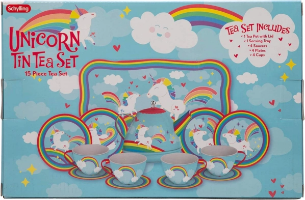 Dieses zauberhafte Teeset im Einhorn-Design bringt viel Fantasie und Freude ins Kinderzimmer. Die Metallausführung ist leicht und zugleich widerstandsfähig – perfekt für den täglichen Spielspaß. Kinder können Tee für Freunde, Puppen und Kuscheltiere servieren und dabei Feinmotorik sowie soziale Umgangsformen trainieren.