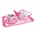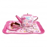 Komplettes Service mit Kännchen, Tassen, Untertassen, Tablett und Etagere für Gebäck – alles für eine realistische Teeparty.