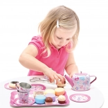 Zeit für eine zauberhafte Teestunde! Dieses umfangreiche Teeset für Kinder bietet alles für ein fröhliches Beisammensein mit Eltern, Puppen und Kuscheltieren. Das Set ist detailreich dekoriert, aus robustem, leichtem Metall und unbedenklichem Kunststoff gefertigt und fördert Fantasie, Zusammenarbeit und Kommunikationsfähigkeiten. Enthält ein Service für 4 Personen mit insgesamt 35 Teilen, einschließlich eines etagierten Ständers für Süßigkeiten.