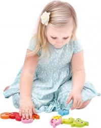 Die langlebige Ausführung aus Massivholz und die kräftigen, unbedenklichen Farben sorgen für eine lange Lebensdauer und sicheres Spiel. Die Teile sind ausreichend groß und liegen gut in kleinen Händen, sodass auch Einsteiger das Puzzle problemlos bewältigen.