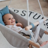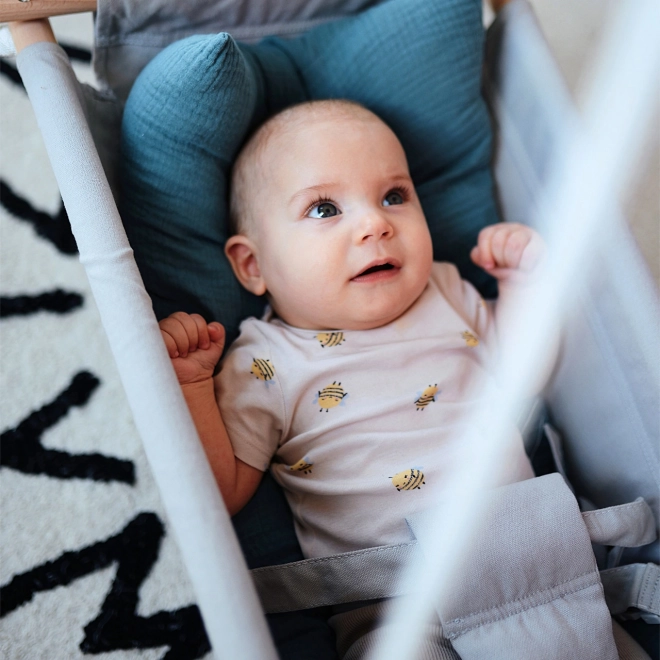 Die Schaukel für die Kleinsten Meer bietet außergewöhnlichen Komfort für Ihr Kind. Sie ist mit einem weichen, abnehmbaren Kissen ausgestattet, das mit Schlaufen befestigt ist, und einem dreipunkt Sicherheitsgurt für maximale Sicherheit. Das Design in rauchblauer Farbe in perfekter Harmonie mit sorgfältig verarbeitetem Massivholz verleiht jedem Raum oder Garten Charme.