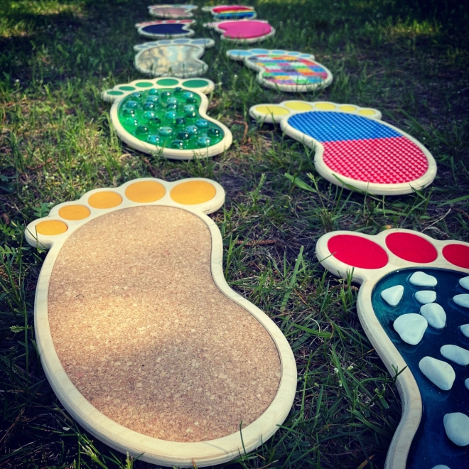 Dieses Set sensorischer Spuren und Kreise bietet eine breite Anwendungsmöglichkeit, insbesondere für Vorschulkinder, Kinder mit Sehbehinderungen oder zur Therapie. Jede Spur mit dem entsprechenden Kreis hat eine unterschiedliche plastische Oberfläche, was die Entwicklung des Tastsinnes unterstützt.