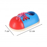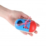 Ein unterhaltsames und praktisches Hilfsmittel für Kinder, die das Schnürsenkelbinden lernen. Zwei kompakte Holzschuhe fördern die Feinmotorik, das logische Denken und die Selbstständigkeit. Dank der stabilen Holzkonstruktion und der kleinen Abmessungen ideal für zu Hause und unterwegs.
