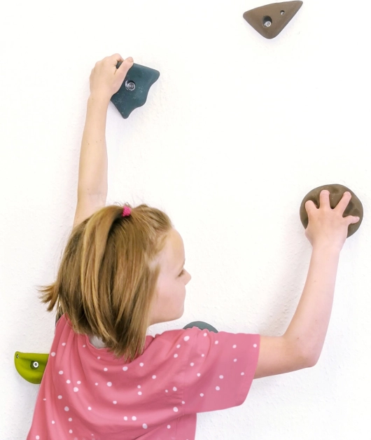 Die Griffe sind so gestaltet, dass sie sich nicht drehen, was maximale Sicherheit für kleine Kletterer bietet.
