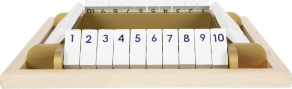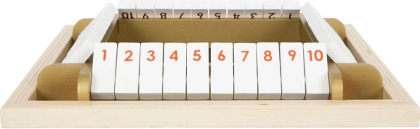 Diese moderne Version des Klassikers Shut the Box mit eleganten goldenen Details unterstützt Kinder bei der Entwicklung früher Mathematik, Logik und Konzentration. Umklappbare Klappen mit den Zahlen 1–10 animieren dazu, die Summen der Würfelwürfe zu üben und schnell zu entscheiden – und das alles in spielerischer Form.