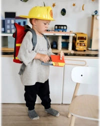 Diese hochwertige Kinder-Motorsäge aus Holz verbindet langlebige Verarbeitung und sicheres Design für den täglichen Spielspaß. Auffällige rote und gelbe Elemente mit realistischer Sägenform regen die Fantasie an und fördern Rollenspiel sowie die Feinmotorik.
