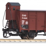 Der gedeckte (Kasten-)Wagen G02 mit Bremserhaus in ČSD-Ausführung bringt klassische mitteleuropäische Güterzüge im Maßstab TT auf die Anlage. Das Modell überzeugt durch scharfen, gut lesbaren Druck, realistische Seitentüren und die Darstellung hölzerner Bretter, was für einen eindrucksvollen Auftritt auf jeder Modellbahn sorgt.