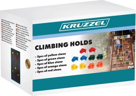 KRUZZEL-Griffe werden mit 2 Schrauben montiert, was ein Verdrehen verhindert und die Sicherheit bei der Nutzung erhöht. Die texturierte, rutschfeste Oberfläche sorgt für Sicherheit für Hände und Füße. Verschiedene Formen und Größen ermöglichen mehr Greifoptionen je nach Zugrichtung. Ideal für den Bau von Kletterwänden, Leitern, Türmen und weiteren Konstruktionen.