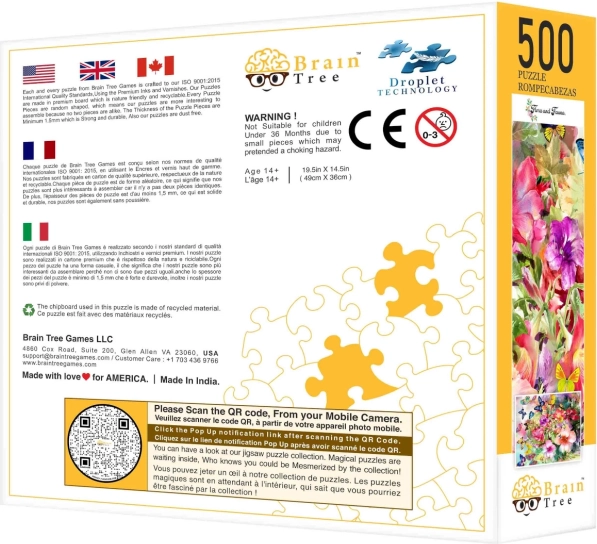 Die Puzzle-Reihe von Brain Tree begeistert mit ihrem attraktiven Design aus Blumen und Schmetterlingen. Dank zufälliger Formstücke entdecken Sie beim Legen eine neue Dimension des Abenteuers. Die angebotenen praktischen Zubehörteile wie der Papierständer und Kartonfächer machen das Puzzle-Erlebnis noch angenehmer. Außerdem enthält das Paket ein Poster im Format 52x30 cm, das als Vorlage dient. Genießen Sie den Spaß mit Familie oder einen ruhigen Abend allein.