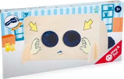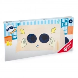 Die Tastwand Small Foot Sense-Game bietet Kindern eine sichere und unterhaltsame Möglichkeit, ihre sensorische Wahrnehmung zu trainieren. Hinter der Holzwand befindet sich ein Stoffbeutel mit Reißverschluss, in den sich verschiedene Gegenstände leicht einlegen lassen. Kinder stecken ihre Hände in die weichen Textilärmel und erraten nur durch Ertasten, was sie halten.