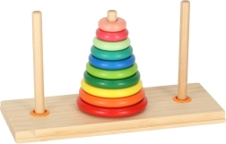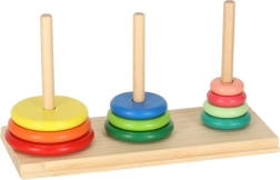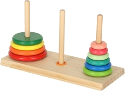 Dieses zeitlose Logikspiel trainiert Geduld und Konzentration: Ziel ist es, alle Scheiben von der ersten Stange auf die letzte zu versetzen, sodass sie wieder von der größten zur kleinsten sortiert sind – dabei darf stets nur eine Scheibe bewegt werden, und eine größere Scheibe darf nie auf einer kleineren liegen. Klingt einfach, fordert aber Kinder wie Erwachsene heraus.