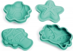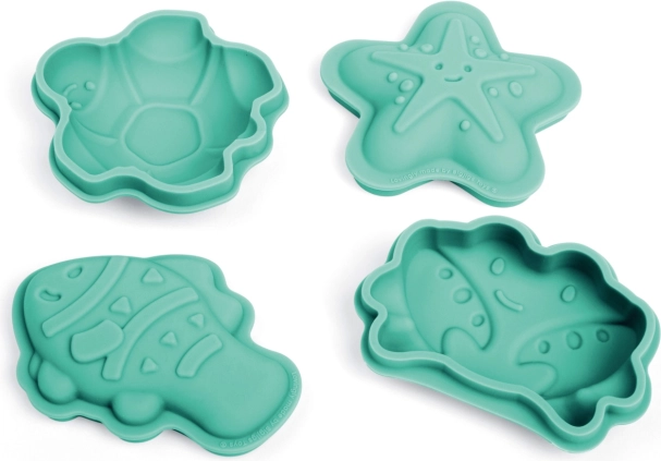 Das Set beinhaltet vier verschiedene Silikonformen in Gestalt von Krabbe, Fisch, Seestern und Schildkröte für die maximale Kreativität Ihrer Kinder.