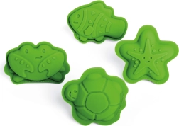 Das Set enthält Seestern, Krabbe, Fisch und Schildkröte – detailreiche Formen, die schöne Abdrücke hinterlassen und Feinmotorik sowie Fantasie fördern.