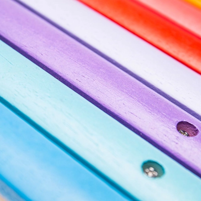 Sichere Schrauben sichern die feste Befestigung der Tasten, was Kinder beim Spielen schützt. Dieses Xylofon ist ideal für die Entwicklung der Koordination und Farberkennung.