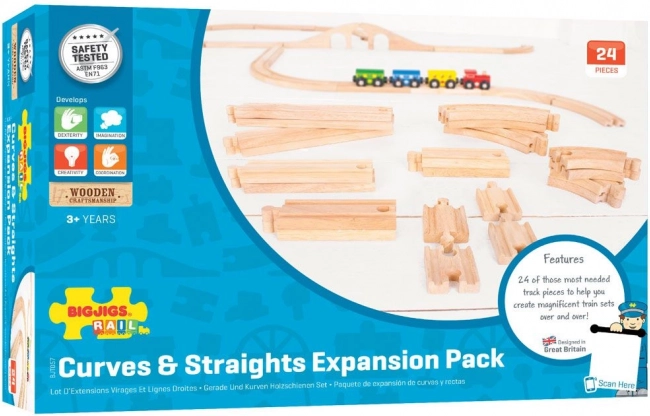 Das Holzschienenset von Bigjigs Rail mit 24 Teilen bietet die Möglichkeit, Ihre Eisenbahnstrecke zu erweitern und zu personalisieren. Hochwertiges Naturmaterial und perfekte Kompatibilität mit anderen Marken machen dieses Set zur idealen Wahl für die Entwicklung der kindlichen Vorstellungskraft.