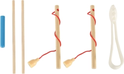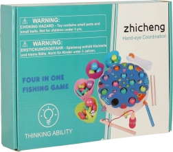 - Verschiedene Spielmodi: magnetisches Angeln von Fischen und Raupen, Übertragen mit Pinzette/Stäbchen, Farbsortierung, einfache Aufgaben mit Zahlen, Zählübungen als Brettspiel.