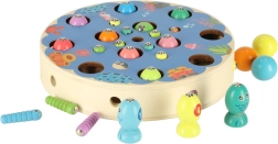 Dank der großen Anzahl an Teilen ist das Spiel ideal für mehrere Kinder gleichzeitig – eines angelt Fische, ein anderes sammelt Raupen und ein weiteres sortiert Kugeln in Silikonschälchen. Sichere Materialien und glatt geschliffenes Holz sorgen für ein angenehmes und unbeschwertes Spielerlebnis.