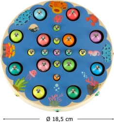 Cleveres Montessori-Spiel für die Kleinsten, das Spiel und Lernen verbindet. Beim Angeln der Fische mit Magnet, Übertragen der Elemente mit Pinzette und Sortieren nach Farben entwickeln Kinder Feinmotorik, Hand-Auge-Koordination, logisches Denken sowie Rechenfertigkeiten. Bunte Holzteile und ein umfangreiches Zubehör laden zum selbstständigen und gemeinsamen Spiel ein.