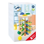 Hammer-Spiel Turm mit Kugeln von Small Foot ist das perfekte Spielzeug zur Förderung der motorischen Fähigkeiten von Kindern. Es besteht aus einem Turm, in den Kinder 3 bunte Kugeln durch Plastikringe hämmern und beobachten, wie die Kugeln die Treppe hinunterrollen und einen klickenden Klang erzeugen.
