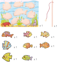 Unterhaltsames Holzspiel für die Kleinsten, bei dem Kinder mit einer magnetischen Angelrute bunte Fische fangen und sie in die richtigen Öffnungen zurücksetzen. Unterstützt Feinmotorik, Augen-Hand-Koordination und Konzentration. Hergestellt aus hochwertigem Holz aus verantwortungsvollen Quellen, erfüllt europäische Sicherheitsnormen. Die Verpackung enthält 10 Teile.