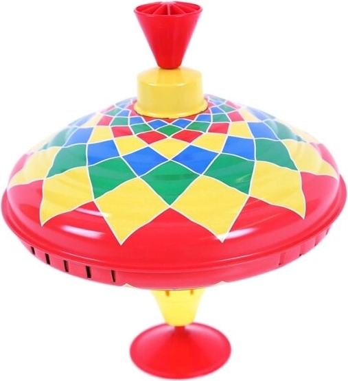 Der Kreisel ist mit leuchtenden Farben gestaltet, die sofort die Aufmerksamkeit der Kinder auf sich ziehen und ihr Interesse am Spielen fördern.