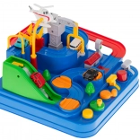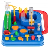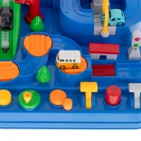 Begeben Sie sich auf eine spannende Fahrt voller Überraschungen. Die interaktive Strecke mit Hindernissen, Zugbrücke und Getrieben prüft die Geschicklichkeit und das logische Denken der Kinder. Die Steuerung ist einfach und macht Spaß – mit Tasten und drehbaren Elementen bewegen Sie die Autos auf der Strecke und erfüllen Missionen der Rettungskräfte.