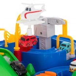 Interaktiver Auto-Hindernis-Rennpark mit 4 Fahrzeugen und Hubschrauber 24 × 24 cm