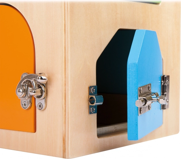 • Förderung der Feinmotorik: verschiedene Schloss- und Mechaniktypen zum Trainieren der Fingerfertigkeit.