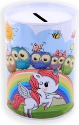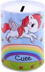 Diese Metallspardose mit Einhornmotiv ist ideal für Kinder, die anfangen möchten, für ihr Lieblingsspielzeug zu sparen. Sie besticht durch ihr dekoratives Design und den praktischen Münzeinwurf oben.
